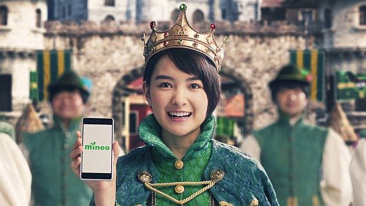 マイネ王役の女優の葵わかなさんが、スマホを片手に「スマホ代安くするにはスマホごと乗り換えるのが普通」「マイネオなら、あなたのスマホそのままで安くなる」「これが新しいフツーである」と語り、国民が「さすがマイネ王」と言う、マイネオのCMです。