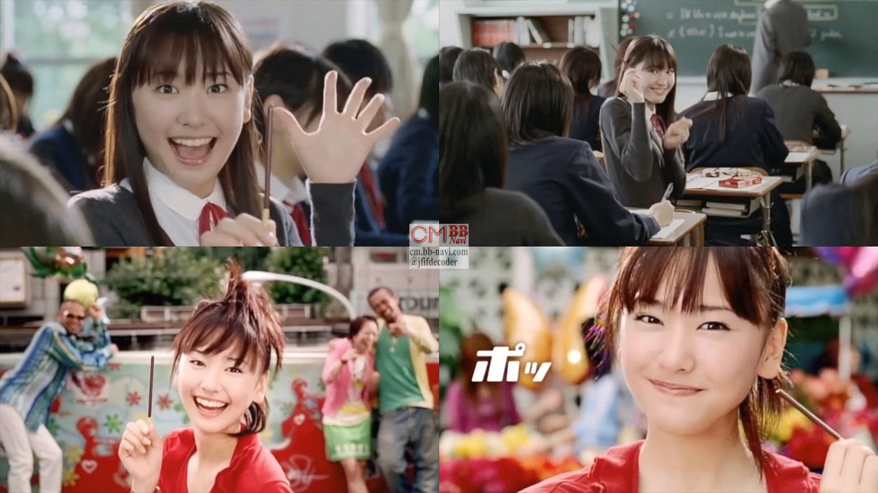 女子高生役の新垣結衣さんが、ポッキーを持って弓矢を引くポーズをしたり、ダンスしたりするポッキーのCM 30秒版です。