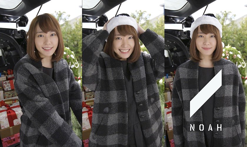 白と黒のチェックのコートを着た女優の新垣結衣さんが、ノアにプレゼントを詰め込みながら、「サンタクロースって、赤と白が当たり前みたいになってますよね」「黒と白のほうが、スタイリッシュでかっこよくないですかね?」と言って、黒と白のサンタ帽をかぶって「メリークリスマス(笑)」と微笑む、トヨタノアのスマホサイズのウェブ限定CM動画12月22日版です。