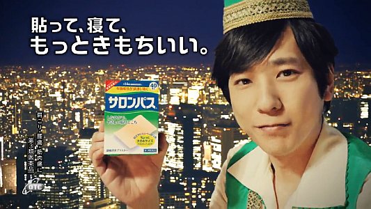 嵐の二宮和也さんが、大都会の夜空を自由に飛びまわる魔法の絨毯に乗って登場し「地上のみなさん、これが肩こりに効くサロンパスの気持ちよさ」と言うと、一緒に絨毯に乗っていたハリセンボンの近藤春菜さんが「気持ちいい」「超絶気持ちいい〜」と言って、空飛ぶ魔法の絨毯から落ちてしまうと、実は近藤春菜さんの夢オチと言う、サロンパスのCMです。