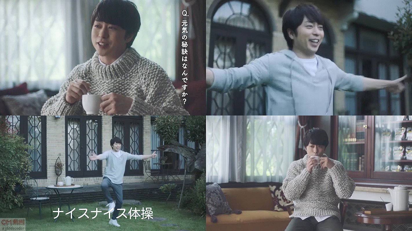 嵐の櫻井翔さんがインタビューで「僕がいつも元気なのはナイスナイス体操のお陰ですね」と「ナーイスナーイスナーイス」の掛け声と共に、何がナイスなのかよくわかからない軽快なナイスナイス体操を披露し、「冷え込むこの季節は特に、ナイスナイス体操ですよ」と、真剣に答えつつも温かい森永ミルクココアを手放さず、「あくまで個人の感想です」と言いつつ、森永ミルクココアを大量に購入して書棚にまでストックしてある、森永ミルクココアのCMです。