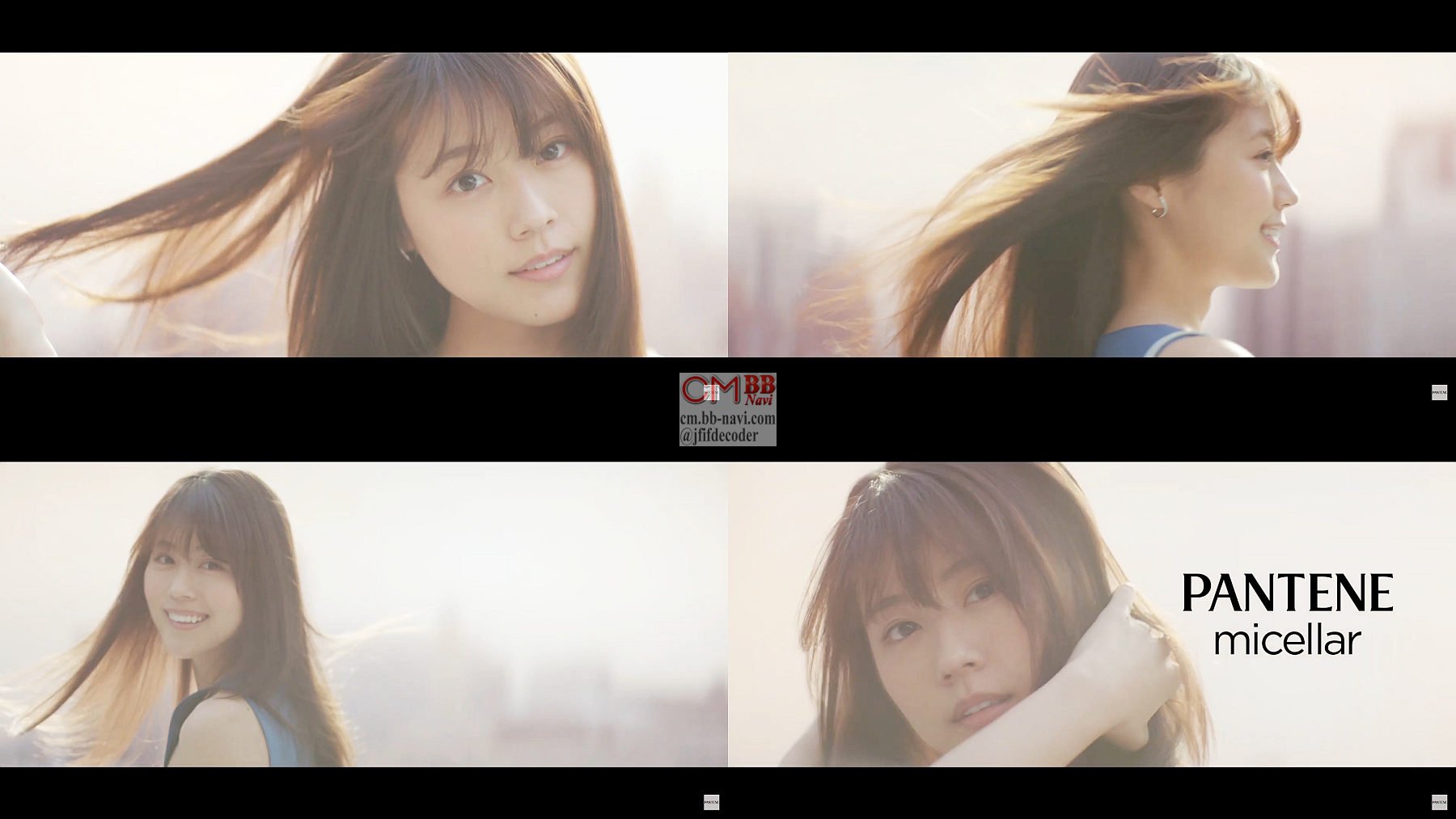 女優の有村架純さんが長い髪を風に揺らせ、パンテーン ミセラーの紹介映像に続き、交響曲第9番のメロディーで「パンテーンミセラー わたしはミセラー♪」と歌ってポージングします。