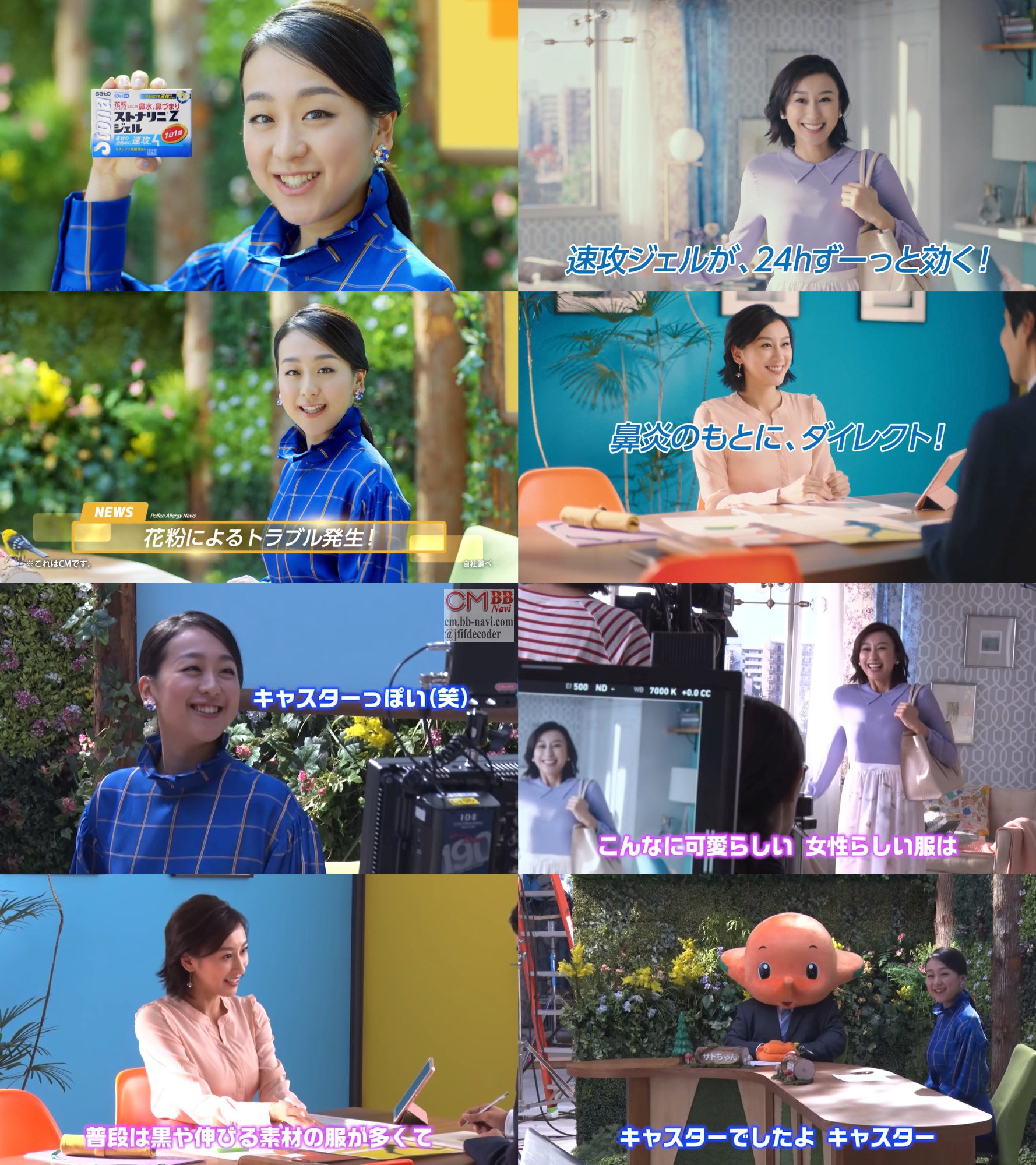 浅田真央さんがニュースキャスター役に、姉の浅田舞さんがOLになる、佐藤製薬 ストナリニZジェル,ナザールαARのCMのメイキング動画。