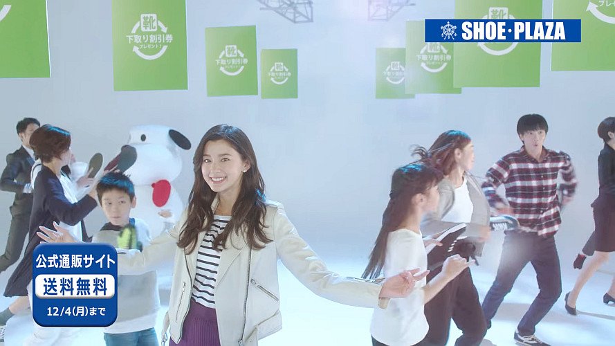 チヨダのモデルの朝比奈彩さんが「靴は下取りで買い替えて」と登場し、キャラクターのくつお達と一緒に、「シュープラザ〜♪靴の下取り〜♪」と歌って踊って「今なら、600円分の割引券に引き換え」「値下げ品にも使える」と言う、シュープラザのCMです。