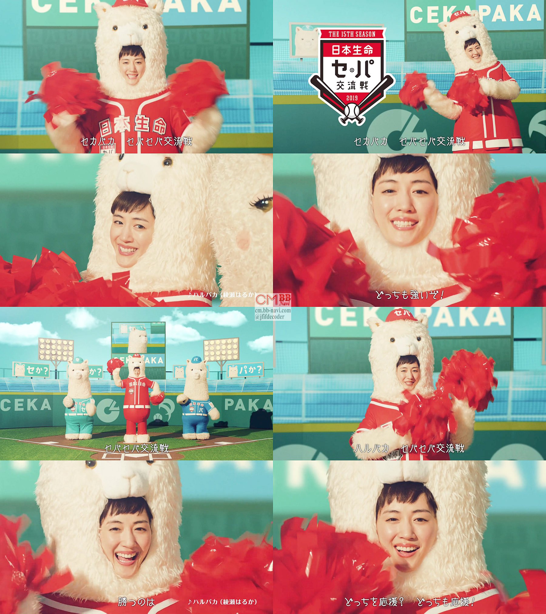 アルパカの着ぐるみの綾瀬はるかさんが「セカパカ セパセパ交流戦♪勝つのはセカパカ♪ 」と歌って踊る日本生命セ・パ交流戦2019のCM 30秒版開催中バージョン。