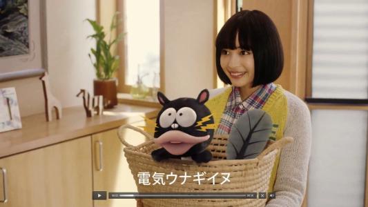捨てられていた電気ウナギイヌを、女優の広瀬すずさんが拾ってきて飼うCM。