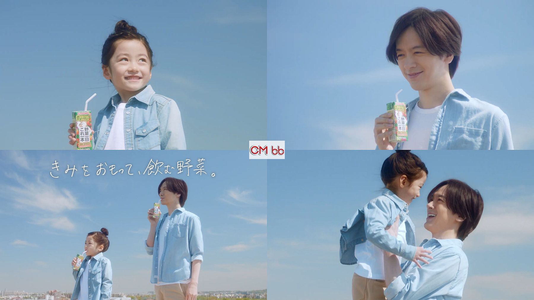 幼い娘役の落井実結子ちゃんと仲の良いパパ役のDAIGOさんが一緒にカゴメ 野菜一日これ一本を飲み「君を想って飲む野菜」と語る映像と、色々な家族が野菜一日これ一本を飲む映像を使ったCM 30秒版です。
