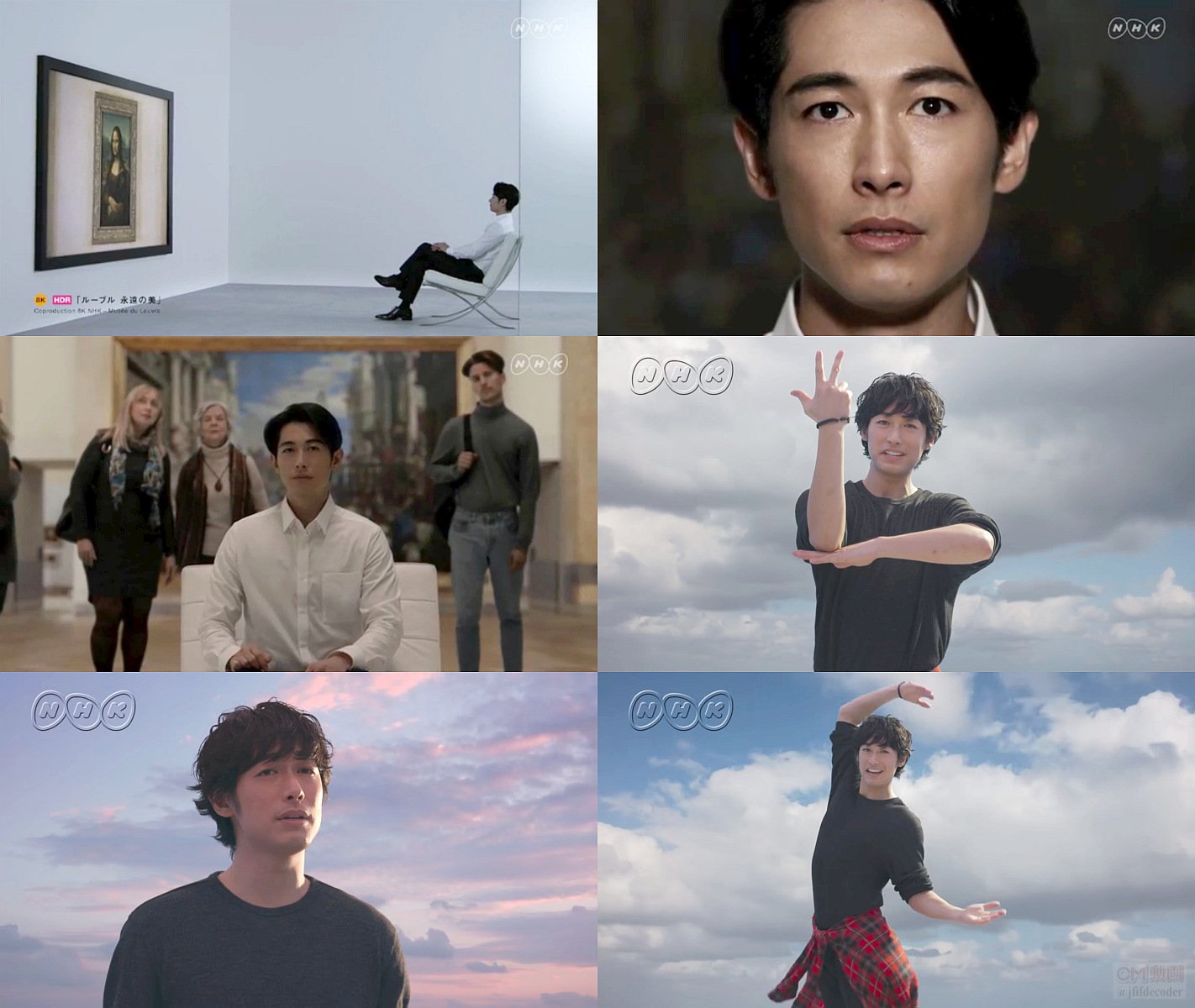 NHKスーパーハイビジョンのナビゲーター役になった俳優のディーン・フジオカさんが、ソファに腰かけ、8Kのモニターに映るモナリザの絵を見ながら「スーパーハイビジョンで見ているモナリザなのか、ルーブルのモナリザなのか、僕は、時にわからなくなる。」「本物の凄さが伝わってくる」「もはや、番組では無い、体感だ。」と語る、NHKスーパーハイビジョンのCMです。