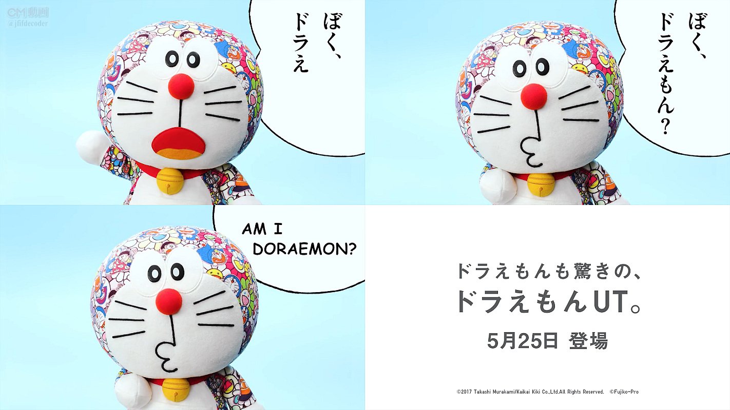 カラフルなデザインのドラえもんが登場し、「AM I DORAEMON?」と吹き出しで質問する、ユニクロ Doraemon UTの多分ウェブ限定の短いCMです。