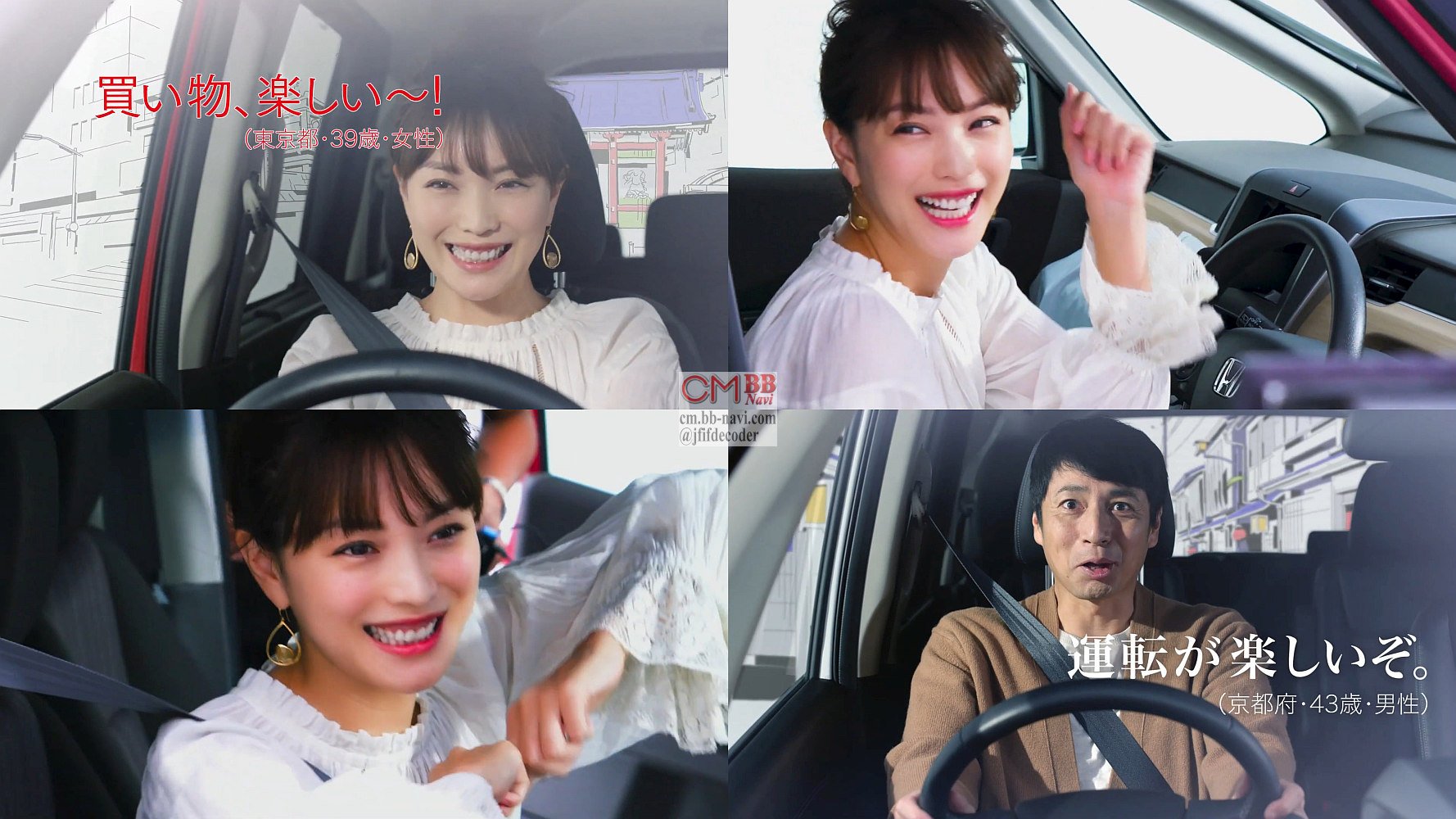 モデルの蛯原友里さんがフリードを運転しながら「お買い物、楽しい〜」と言い、俳優の徳井義実さんが「運転が楽しいぞ」と言う、ホンダフリード(FREED)のCMのメイキング動画。