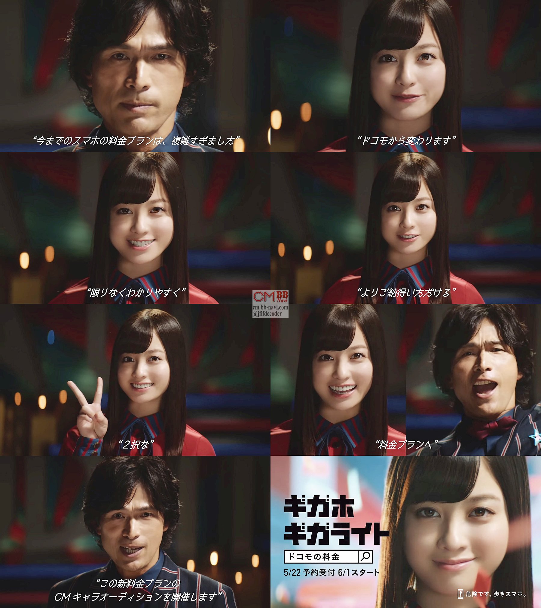 江口洋介さんと橋本環奈さんがMCになって「二択な料金プランへ」と紹介し、新料金プラン”ギガホ”,”ギガライト”の新料金プランのCMキャラクターオーディションの開催を告知する、ドコモのCM 30秒版。