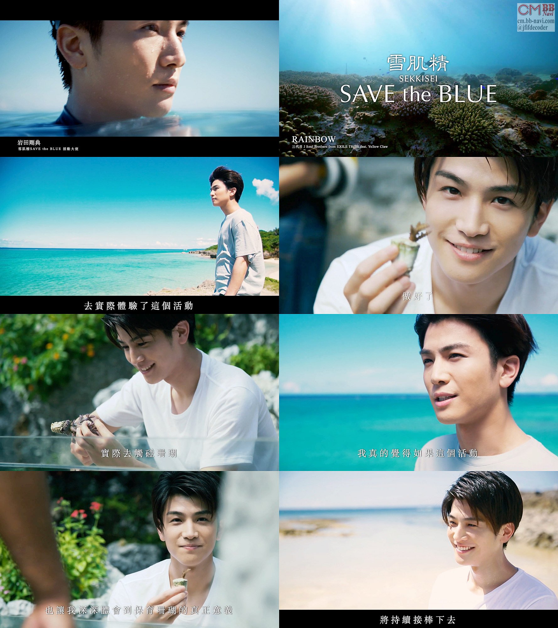 三代目JSB EXILEの岩田剛典さんが、「僕は今、沖縄にいます」と沖縄の海の中から顔を出し、海に潜って、雪肌精を使うとサンゴが増える事を紹介し、「あなたが美しくなると、地球も美しくなる」と言って、海から上がってきて「僕と一緒に、SAVE the BLUEしませんか?」と言う、コーセー台湾 雪肌精のCM 30秒中国語字幕版です。