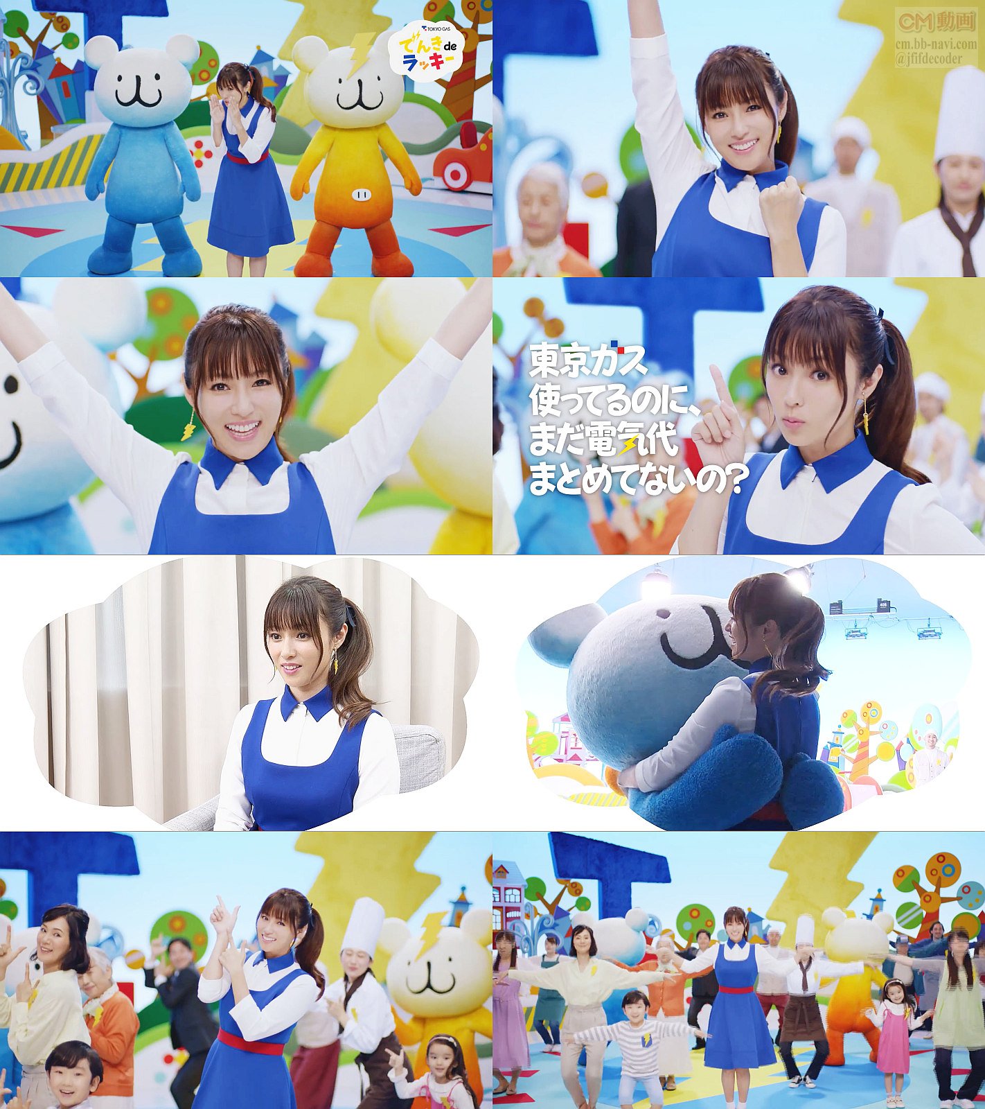 歌のお姉さん風になった女優の深田恭子さんが「ちゃっかり得する チャチャチャチャー♪」と歌って踊る東京ガスのCMのメイキング動画と、テレビCMバラエティ(番組がCMなのでCMです) でんきdeラッキー を告知するCMです。