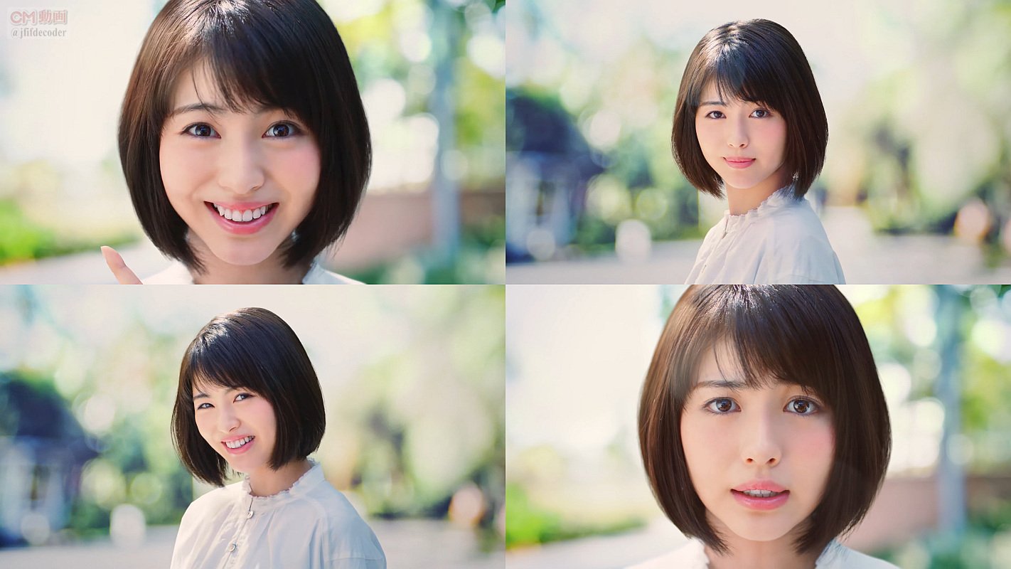 白いシャツを着た女優の浜辺美波さんが「好きです。福沢先輩」と告白し、福沢諭吉が頬を赤らめるCMと、「高校生って、欲しいものいっぱいあるよね」と微笑むCMの2本が1本になった12秒のCMです。