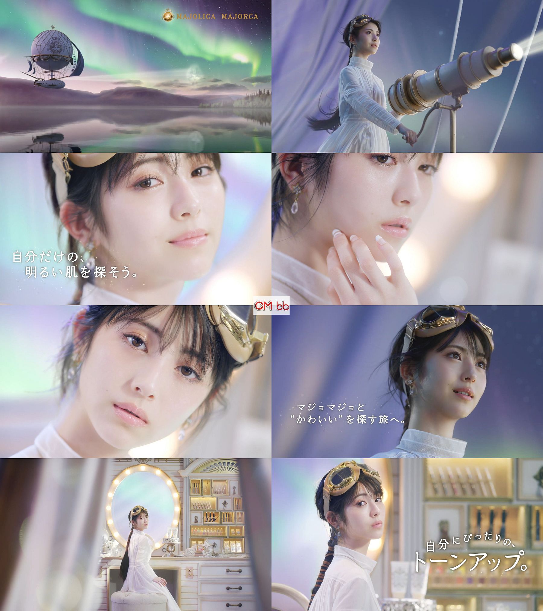 『自分にぴったりのトーンアップ』のナレーションと共に、フェミニンなドレス姿の飛行船のパイロット役の女優の浜辺美波さんがポージングする、マジョリカマジョリカのCMです。