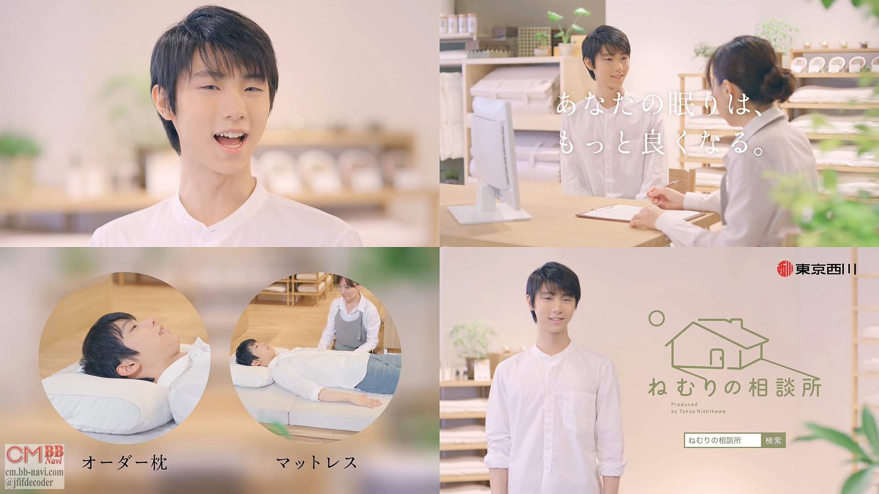 フィギュアスケート選手の羽生結弦さんが、 東京西川のねむりの相談所で」話を聞いて、「へぇー枕って大事なんですね」と言って、「理想の眠りには、心と体を整える事が大切です」と言われ、眠りの「相談してよかった」と微笑む 西川のCM 改訂版です。