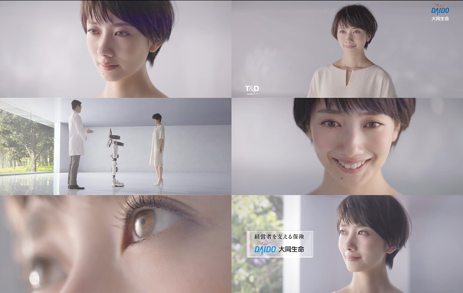 女優の波瑠さんが、自分と同じ名前の、医療用のロボットスーツHAL(ハル)を紹介され、少し微笑みながら見つめ、その活躍を想い、「進化し続ける医療技術にあわせて、保険だって進化していく」と語る、大同生命のCMです。