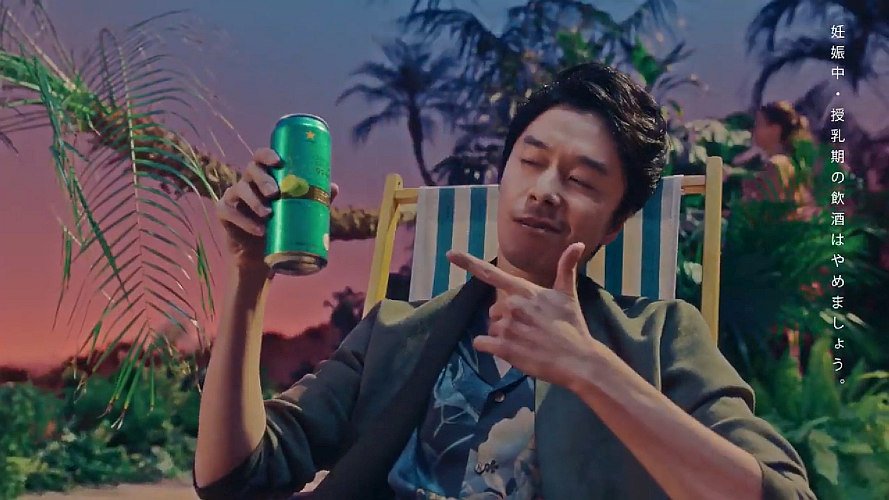 長谷川博己さんが南の島でバカンスを楽しみながら99.99を飲んで「クリアなうまさが止まらない。サッポロチューハイ フォーナイン」と語るCM。