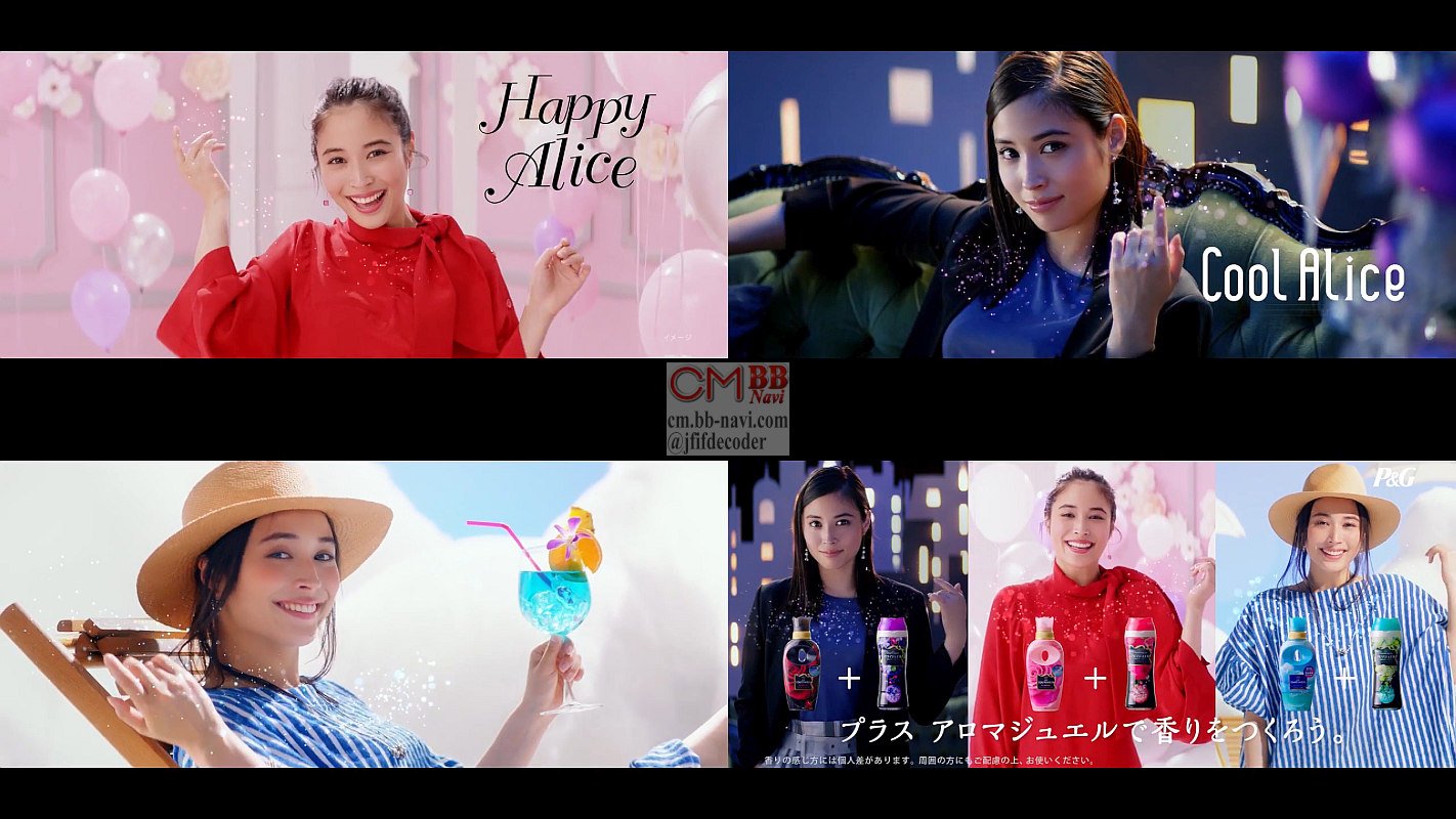 女優の広瀬アリスさんが、柔軟剤にレノア アロマジュエルをプラスして、組み合わせを変えると、「ハッピーなアリス」「クールなアリス」「リゾートなアリス」に変身する、 レノア アロマジュエルのCM 30秒版です。