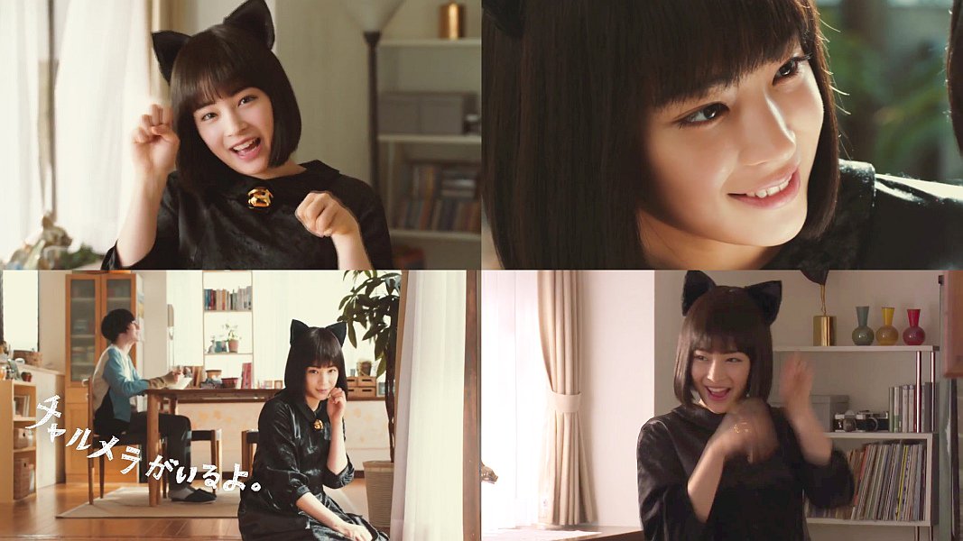 猫耳で黒猫になった女優の広瀬すずさんが「にゃーにゃー」言って猫のポーズで「チャルメニャーニャ」「明星チャルメニャ♪」と言う、明星食品 チャルメラのCM。