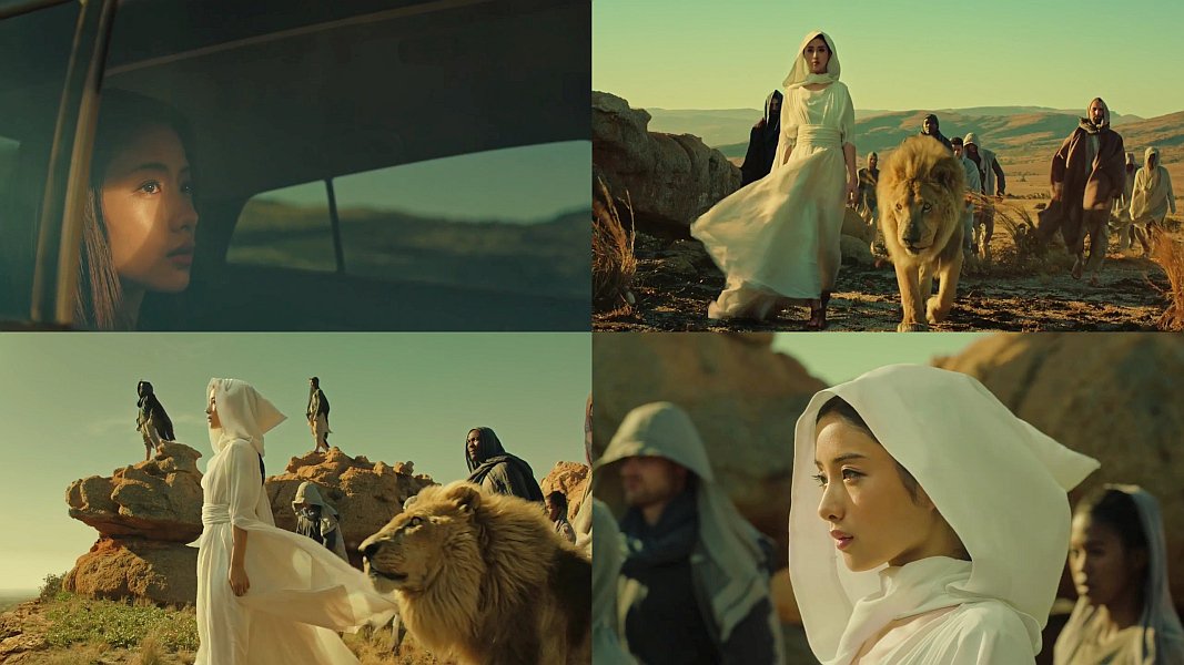 サバンナを疾走するプリウスPHVを、ライオンを従えて歩く全身白い服を着た女優の石原さとみさんが目撃する、トヨタのCM動画です。