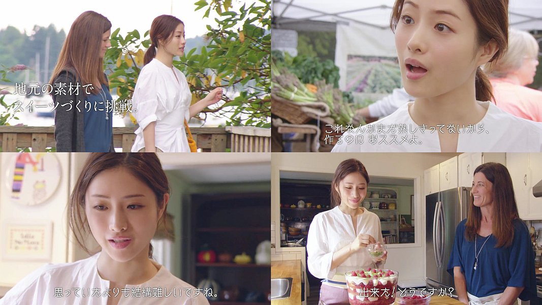 女優の石原さとみさんがをカナダのソルトスプリング島でスローライフを体験して、今回はラズベリーたっぷりのトライフルを作る、イーオンのCMフルバージョンです。道を歩きながら会話を楽しんだり、市場で色々な食材を見て、トライフルを作る為のラズベリーを買って、戻って、大きなボールや大きな器を使って、手ほどきを受けながらトライフルを作ります。