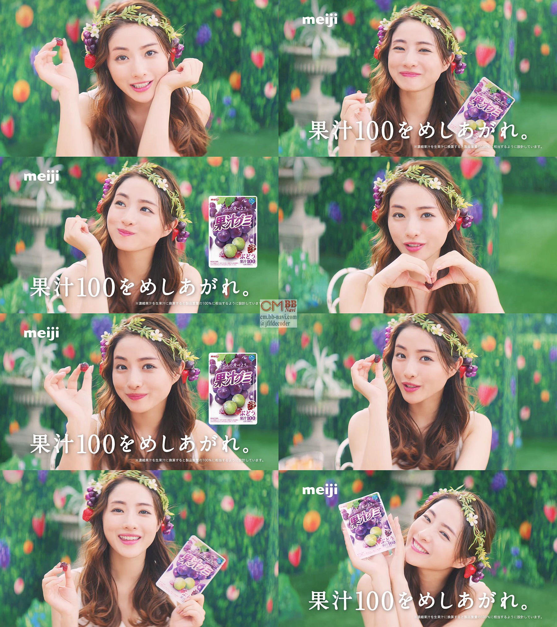 果汁グミの女神風の衣装姿の女優の石原さとみさんが果汁グミを手に「果汁グミ食べたこと無いの?」「ハイ、食べる?」「満員電車、お疲れさま」「午後からも頑張って」など、話しかける短い6秒のCMを1本にまとめたCM集。