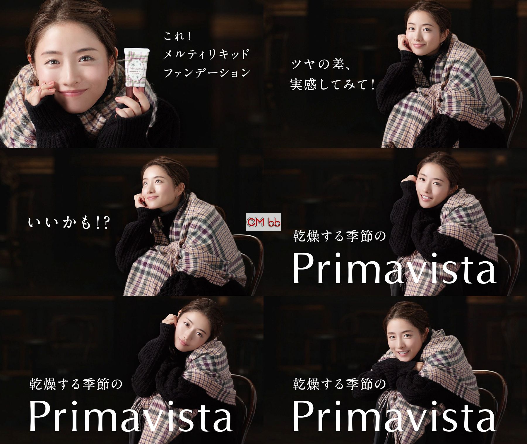 黒いセーターにチェックのマフラーで佇む女優の石原さとみさんが、メルティリキッドファンデーションを手にキュートに微笑んだりポージングなどする、花王プリマヴィスタのウェブ限定CMです。