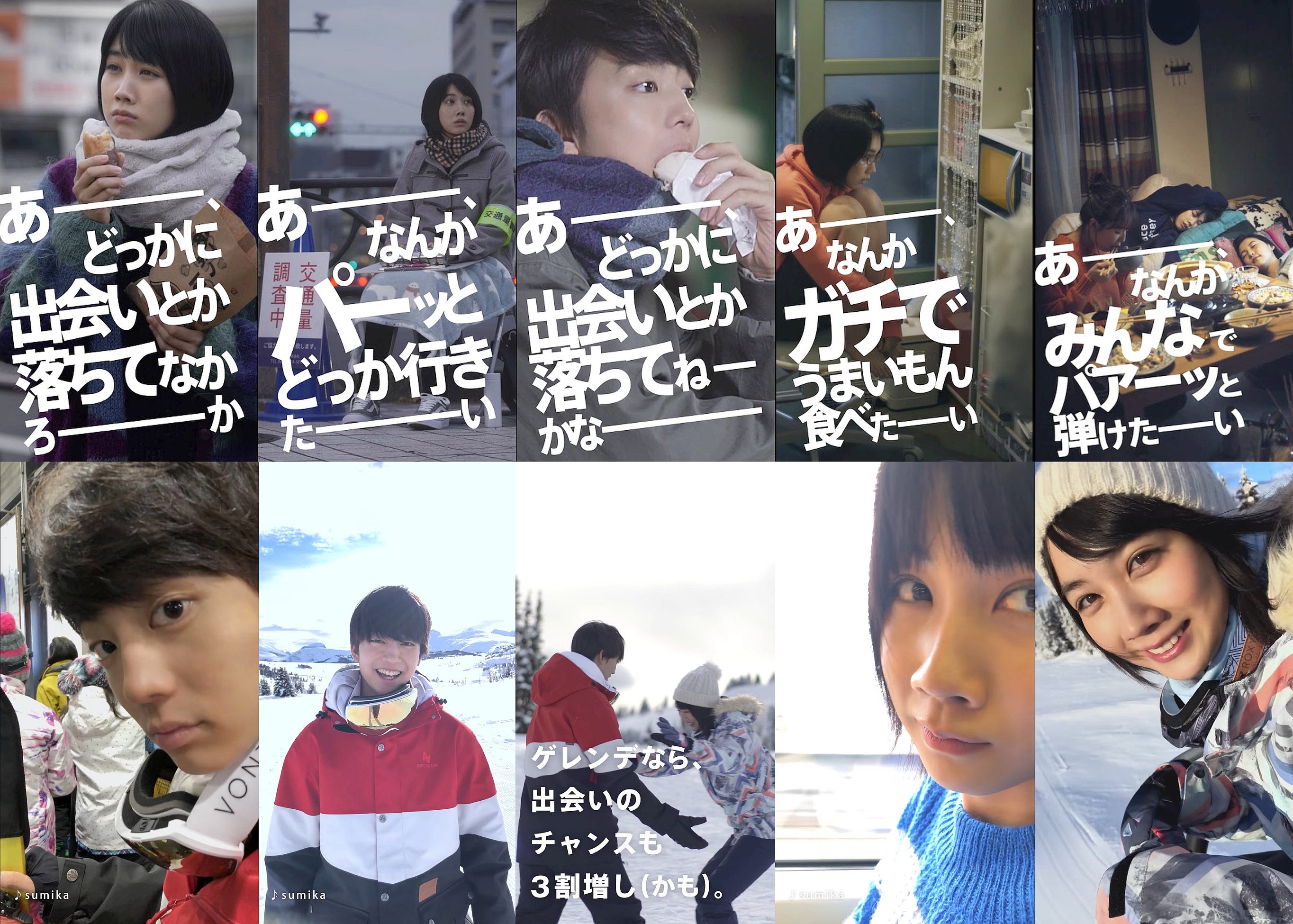 伊藤健太郎 JRSKISKI CM 2018-19 出会い編 more 終了伊藤健太郎 JRSKISKI 企業・ブランド放送開始画質時間メイキングお勧め画像通知 JR East2019年1月HD16shq/sd 伊藤健太郎,松本穂香 出演 JR SKISKIWeb CM 2018-19 出会い編。「あー どっかに出会いとか、落ちてねーかな」CM曲:sumika 俳優の伊藤健太郎さんが、街を行く楽し気なカップルを見て「あー どっかに出会いとか、落ちてねーかな」と、スキー場へやってきて、松本穂香さんと出会う、スマホ画面サイズの、JR東日本 JR SKISKI 2018-19 のWeb限定CMです。CM曲はロックバンドsumikaの書き下ろし曲です。YouTube JR東日本公式チャンネル 伊藤健太郎CM Update:2019/03/23 Edit:2019/03/23 「あー どっかに出会いとか、落ちてねーかな」