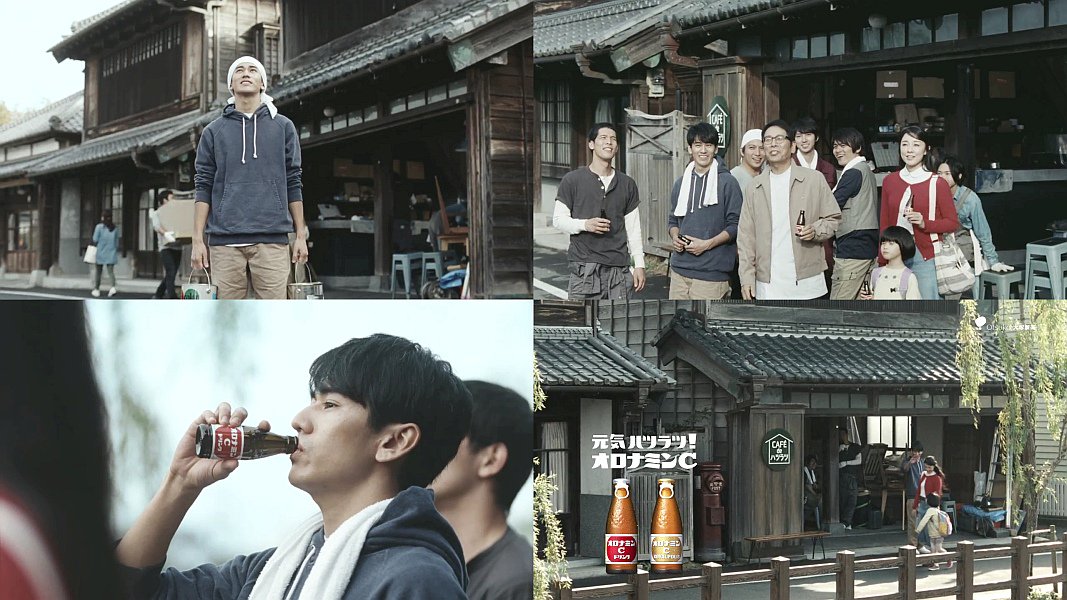 俳優の永山絢斗さんが、故郷のオロナミンCのボトルが巨大タワーになったハツラツタワーのある街に帰ってきて、みんなが元気を分け合える場所を作りたいと考えて、古民家を改造してカフェにしようと改築中に、女優の伊藤歩さんと俳優の大杉漣さんがやってきて応援する、オロナミンCのCM動画です。