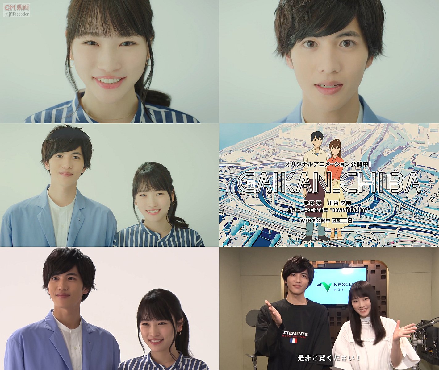 女優の川栄李奈さんと俳優の志尊淳さんが、「6月2日 外環開通、いよいよ千葉へ」と、6月2日16時に東京外環自動車道(三郷南IC〜高谷JCT)、国道298号(国道6号〜国道357号)が開通する事を告知し、松任谷由実さんが歌うCM曲”DOWNTOWN BOY ”が流れ、「つなぐのは、誰かが誰かを想う気持ち」と言って二人がアニメになる、NEXCO東日本の関東エリア限定ローカルCMです。