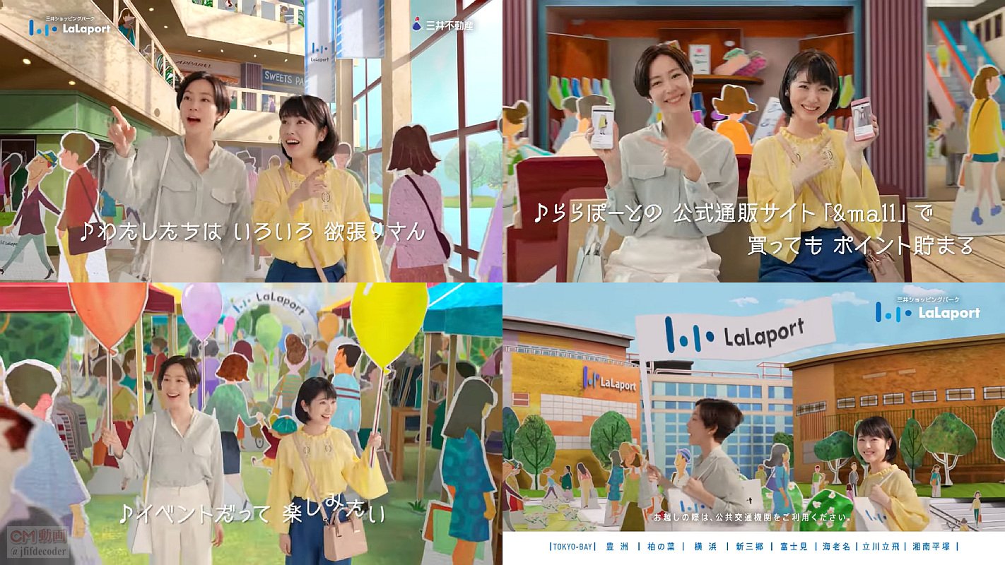 女優の浜辺美波さんと母役の女優の木村佳乃さんが、飛び出す絵本のようなイラストで描かれた三井ショッピングパーク ららぽーとにやってきて、お買い物やグルメやイベントを楽しむCMです。