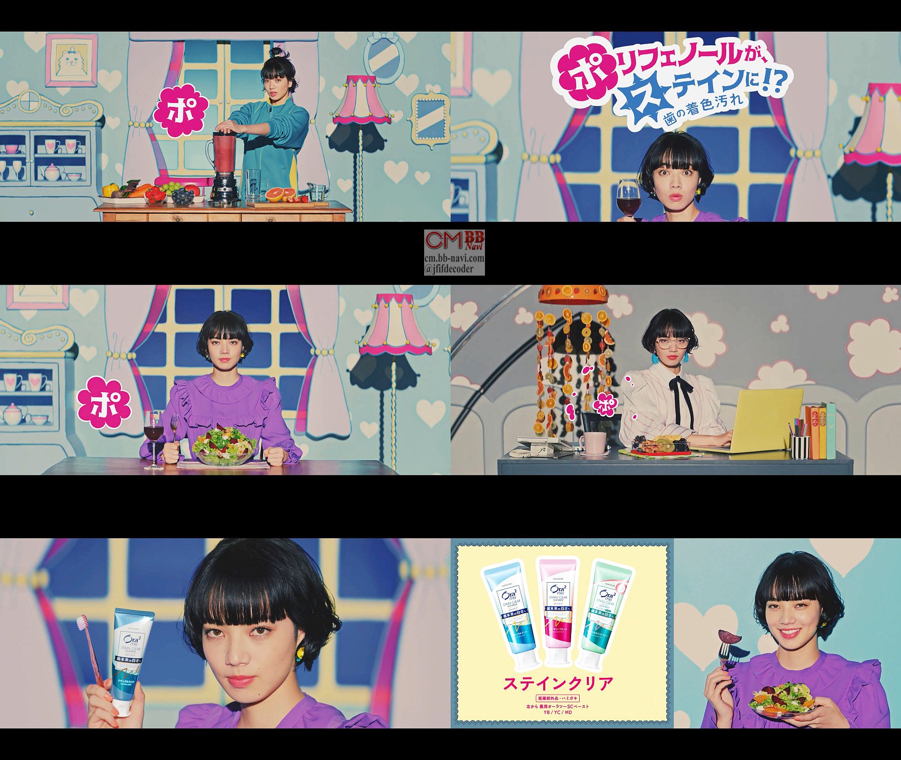 女優でモデルのショートヘアの髪型の小松菜奈さんが、「ポリフェノール、よし」と、ワインやサラダやスムージーやドライフルーツで毎日の食事でポリフェノールを摂ってると、女性のナレーションで『こつこつとってるポリフェノールが、ステインに変わる』と語り、小松菜奈さんが「うそ?」と驚き、オーラツーミーを手に「ステインクリア、よし」と言います。