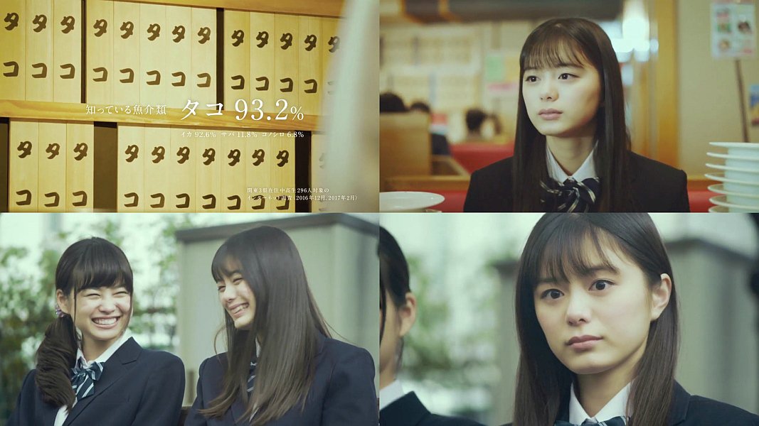 女子高生役の女優の紺野彩夏さんが帰宅途中、真っ白な猫に見つめられると、知っていることだけの世界になってしまい、友人の女子と一緒に回転ずしに入るとメニューは全部タコだけで、花屋の花はヒマワリだけしか無くて、肉屋はバラ肉だけしか売ってなくて、将棋の駒は歩だけで、回転ずしではタコばかりオーダーしている、読売中高生新聞のちょっと変わった長編CM動画です。