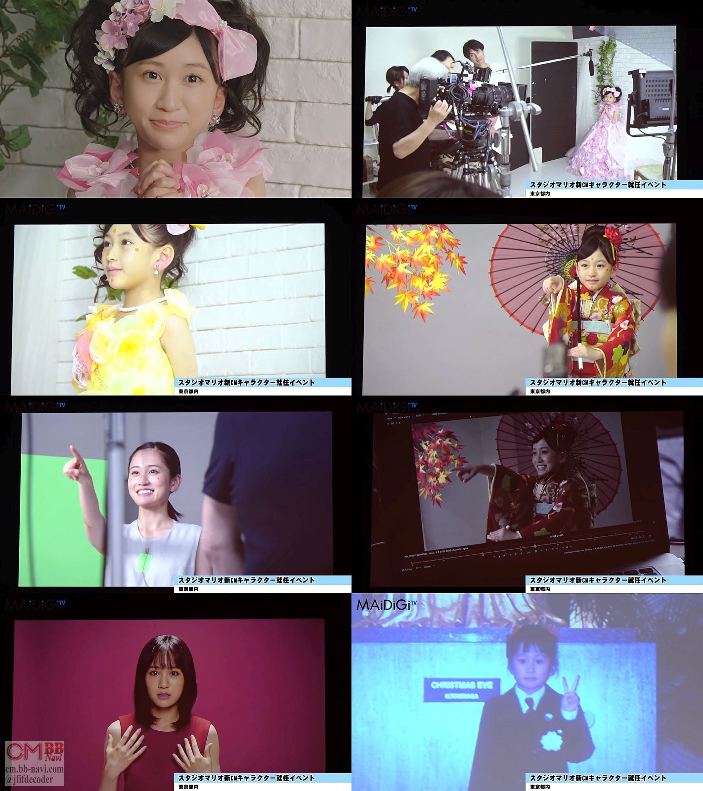 女優の前田敦子さんがCG合成で、七五三の記念写真で親にタメ口を叩く7歳の女の子に変身する、スタジオマリオのCMの、CM発表会で配信された、CM メイキング映像。