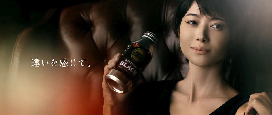 ショートヘアの髪型の女優の真木よう子さんが、革張りの椅子で脚を組んでくつろぎながら、コーヒーを味わい「違いを感じて」と言う、伊藤園 TULLY'S COFFEEのタリーズバリスタズブラックのCM Web限定版です。