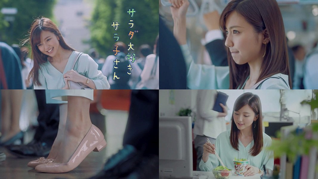 女優の真野恵里菜さんがサラダが大好きなOLのサラ子さんになって、電車の中でつま先立ちで、昼はコンビニのサラダでサラダフォー。夜もサラダフォーを食べて「ハノイの優しい味がする」と言う、Pho・ccori気分(ふぉっこりきぶん)のCM動画です。