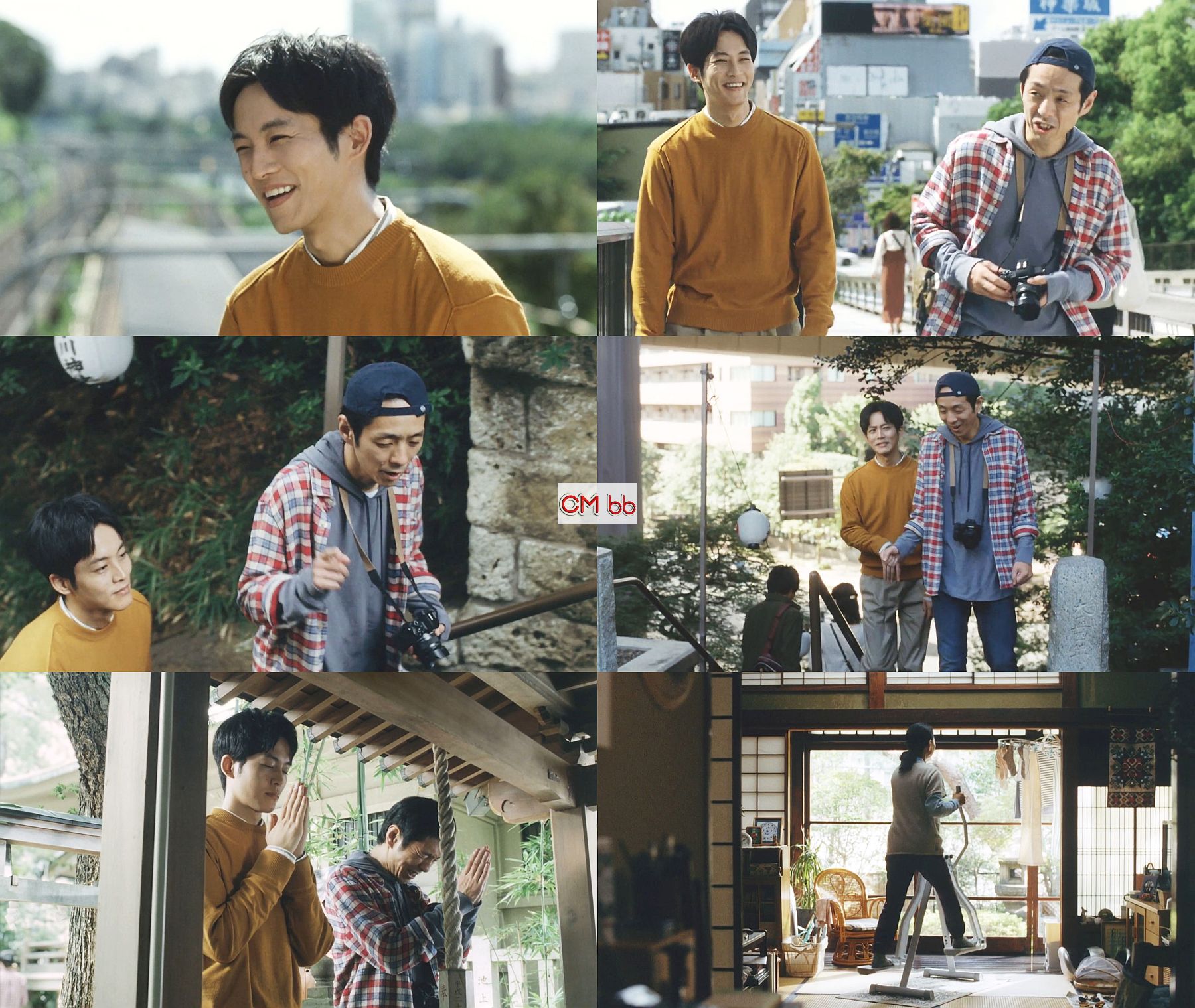 弟役の俳優の松坂桃李さんと、新しくカメラを買った兄役の宮藤官九郎さんが歩きながら、もうすぐ宮藤官九郎さんの子供が生まれる事や、孫を楽しみにして長生きする為にウォーキングマシンをして頑張っている母の事を神社の石段を上がりながら会話し、お参りしながら「元気に産まれてきますように」「母さんがずっと健康でいられますように」と祈ります。