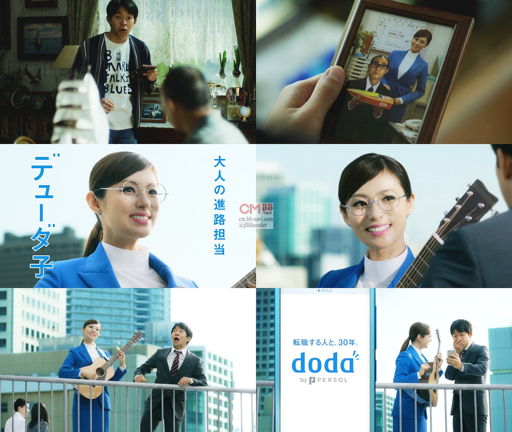 深田恭子さんが「実はキャリア30年」とギターを弾き、岸井ゆきのさんが「抜群の安定感」と言う、デューダ(doda)のCM。