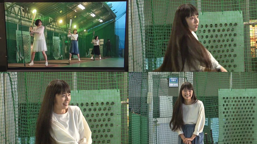 撮影の合間にバッティングセンターで楽しそうにしながらしている様子や、空振りするのを間違ってかっ飛ばしてしまってスタッフにもウケるNGシーンなども1分48秒付近から見れます。最初びっくりした表情がとてもいい感じです。個人的には、こっちのほうが楽しめます。