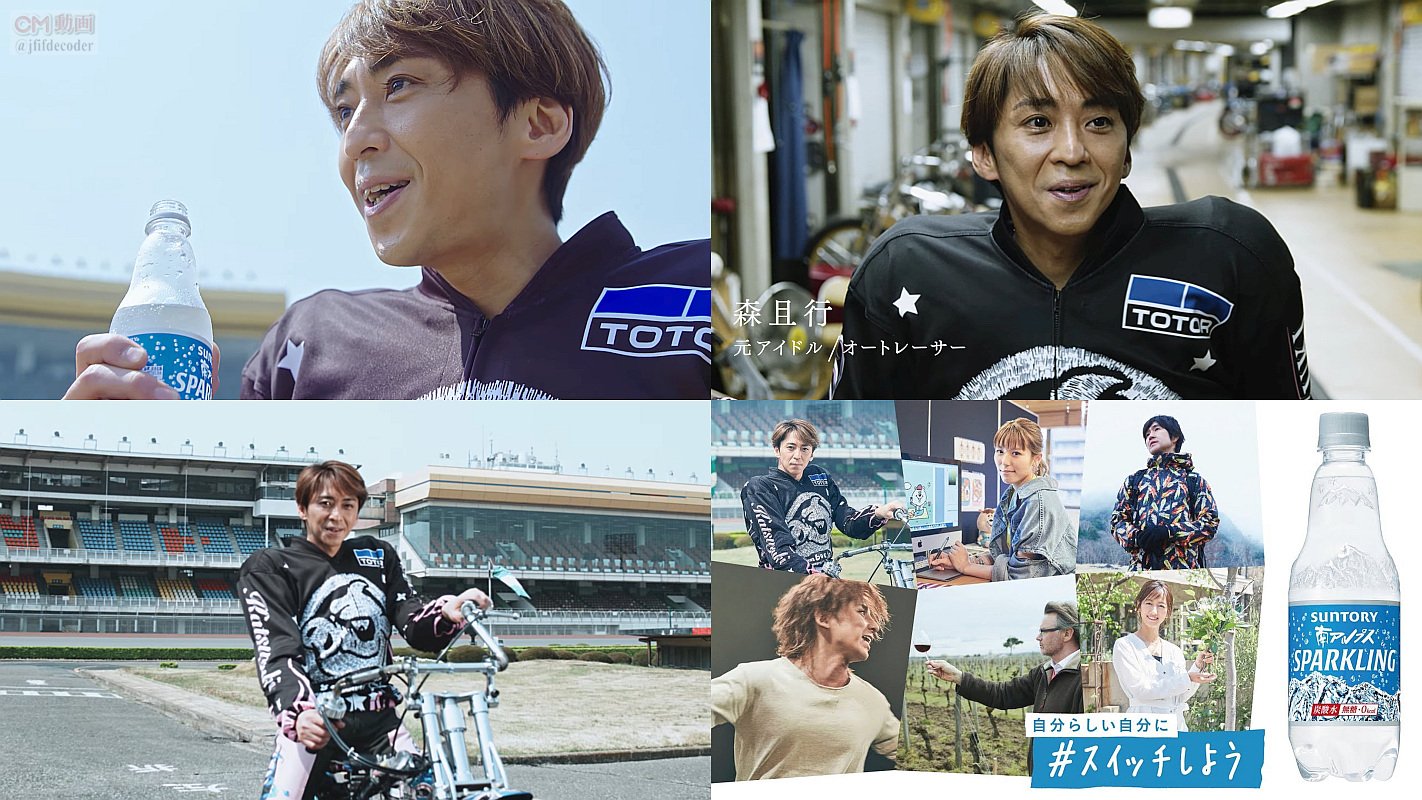 元スマップメンバーで、オートレーサーになった森且行さん、サッカー監督でワイン醸造家になったフィリップ・トルシエさん、ミュージシャンで登山写真家になった藤巻亮太さん、タレントでキャラクターデザイナーになった若槻千夏さん、ミュージシャンで俳優になった松岡充さん、元アナウンサーでフラワーアーティストの前田有紀さんが、スイッチした人生を語る長編CMです。