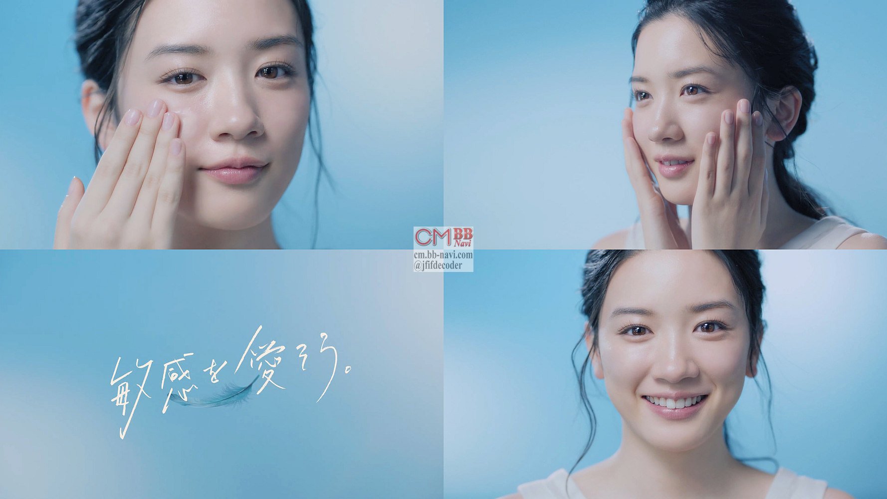 女優の永野芽郁さんがに乗せた瞬間、水のように変わるフリープラス 水感クッションクリームを使って「敏感を愛そう」と言うCM 2月バージョン。