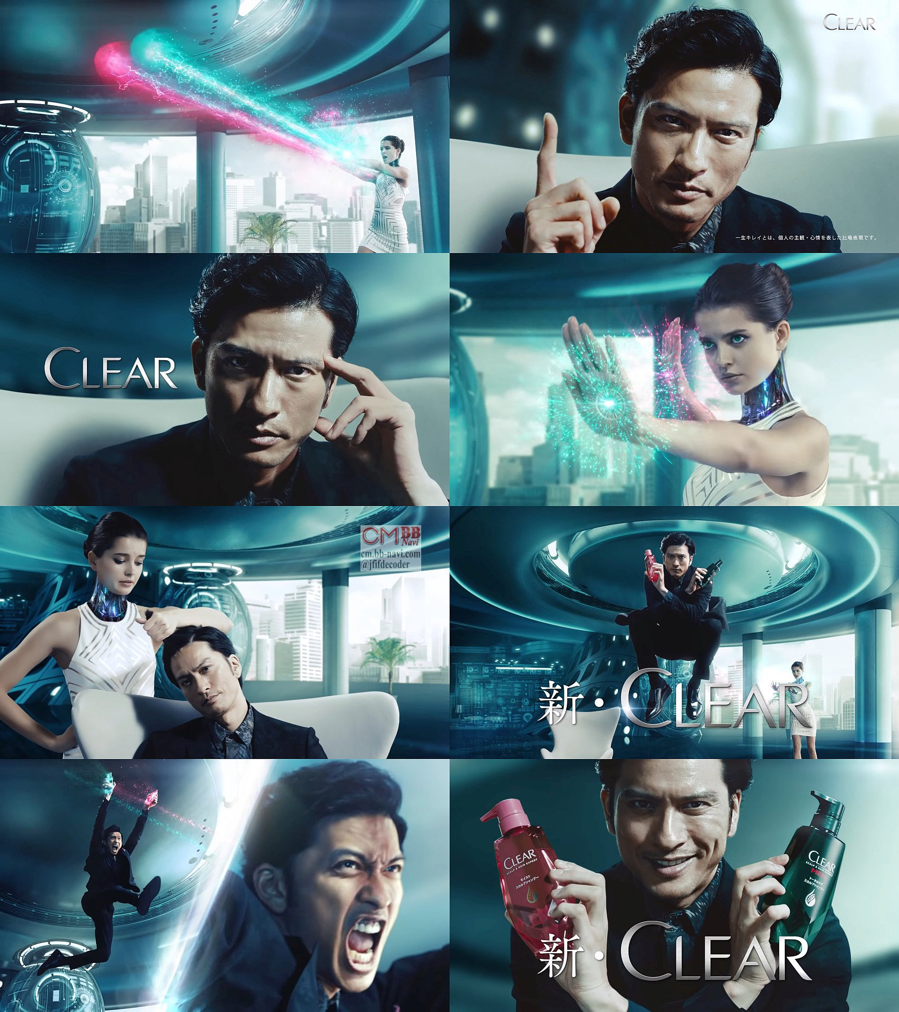 テレビCMで、常識にとらわれない男を演じたTOKIOの長瀬智也さんが共演したアンドロイドの彼女と共に、植木鉢を手に、植物,農業を例に例えながら、髪や地肌を強くて綺麗に育てるためのポイントとヘアケアを語り、「大人の女性に、一生綺麗を」と言う、ユニリーバ CLEAR (クリア)のWeb