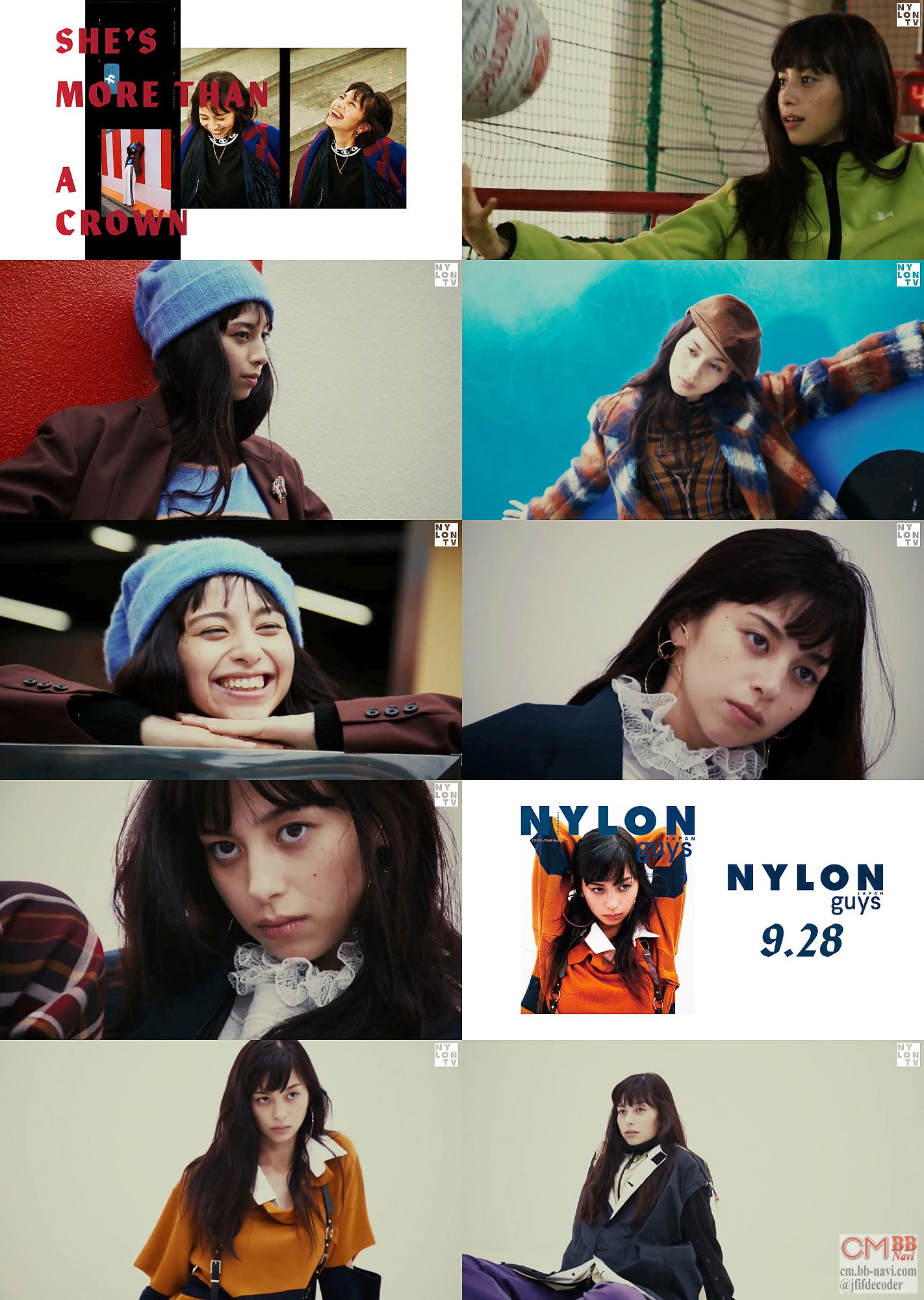 NYLON guys 初登場の、女優でモデルの中条あやみさんが、ボーイッシュな服装を中心に、色々な秋のファッションでポージングし、最後に「NYLON guys見て下さい。NYLON11月号も買って下さい」と言う、PV風の仕上がりのNYLON JAPANの(多分)Web限定CMです。