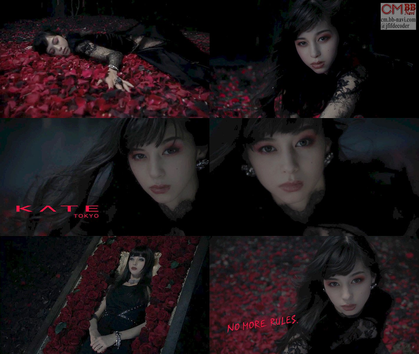 中条あやみさんが、KATEの禁断のヴァンパイアメイクで出演する、カネボウ KATEのCMのメイキング動画 着用しているドレスがよくわかる、中条あやみさんがポージングするスチル撮影シーンなども見れます。