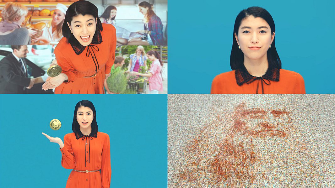 女優の成海璃子さんが「今、世界中で広がってるビットコイン」「まさに新しいお金の発明かも知れません」と言うと、床面に敷き詰められた写真が、レオナルドダヴィンチの肖像画になっている、ビットフライヤーのCM動画です。