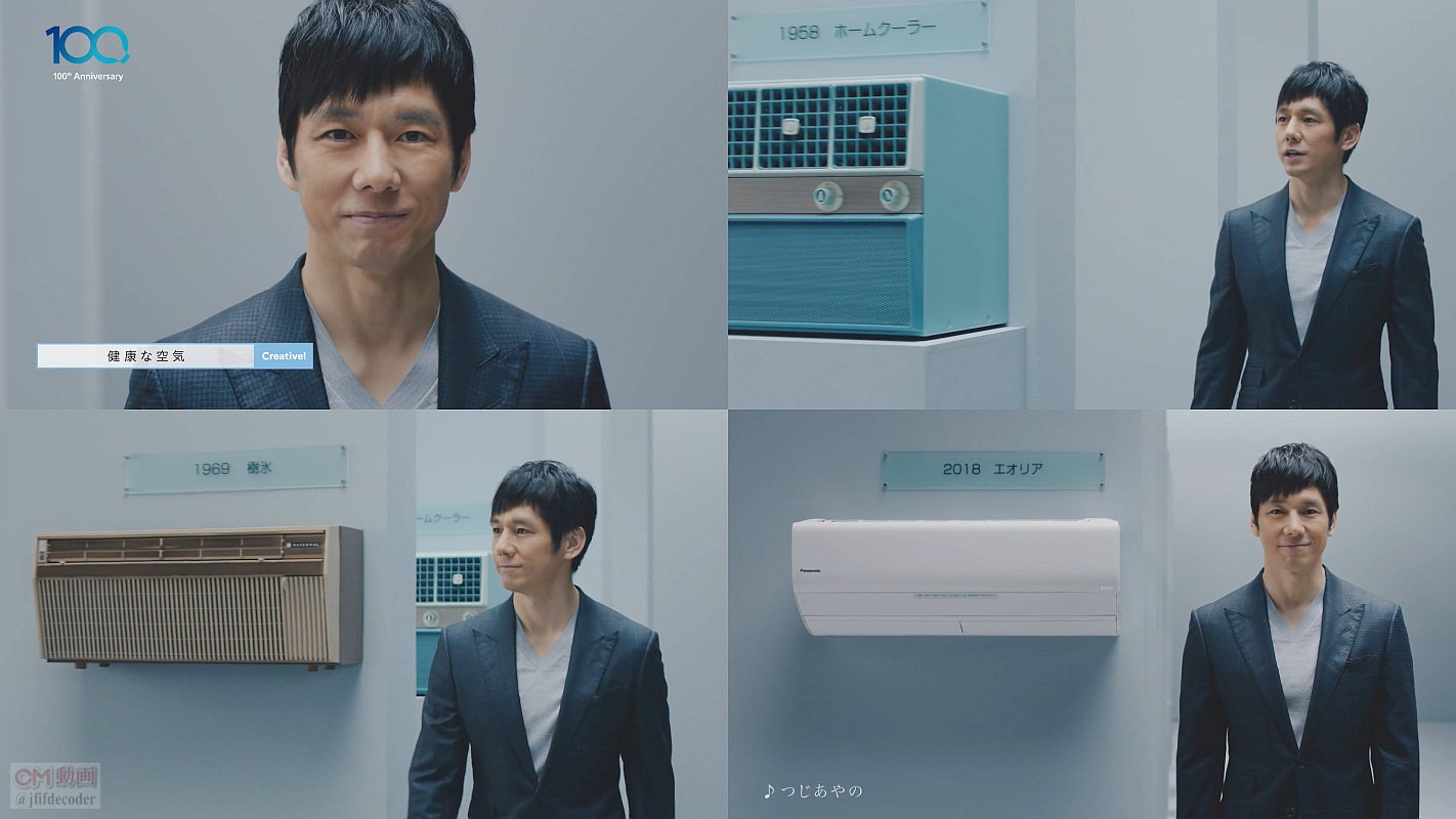 ジャケット姿の俳優の西島秀俊さんが、パナソニックのエアコン誕生の1958年のホームクーラーの頃の昔のエアコンと共に歩み、涼しさと温かさを届けてきたエアコンの歴史を語り、「そして今、エオリアが届けるのは健康な空気です」と語り、最後に顔アップで「健康な空気と暮らそう」と微笑むパナソニックのCM 30秒改訂版です。