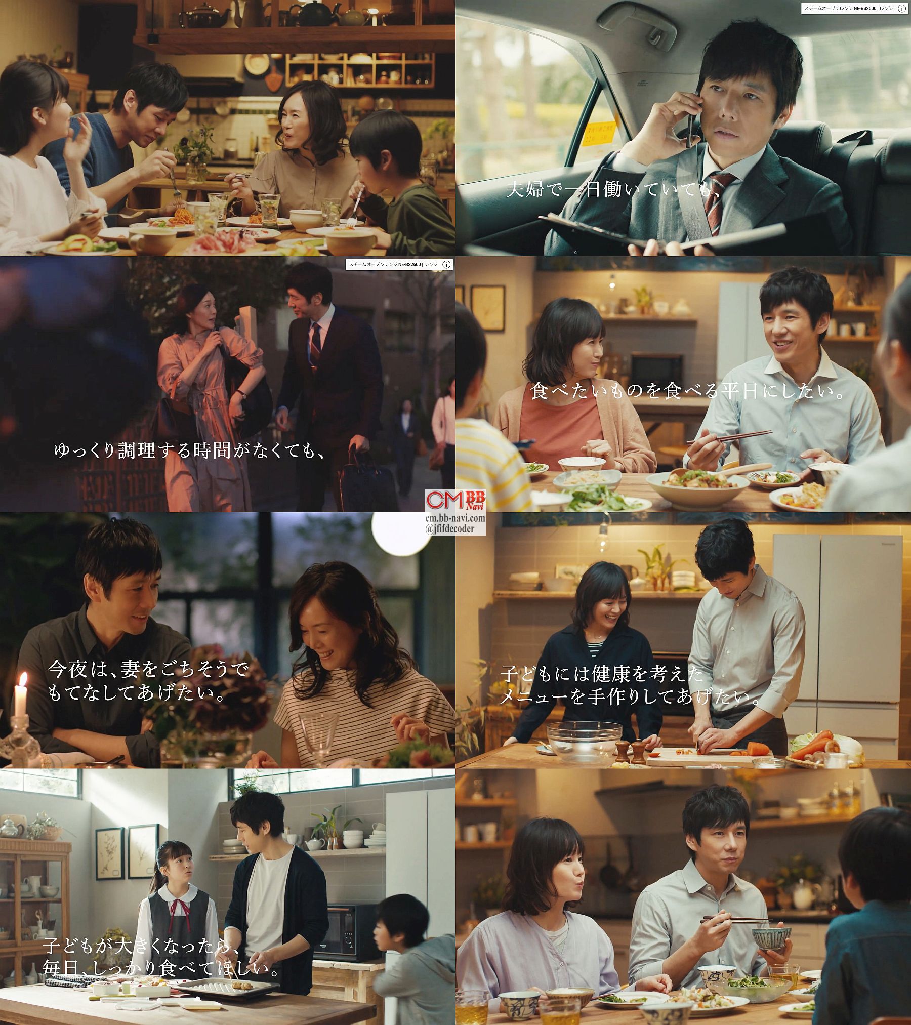 俳優の西島秀俊さんと女優の奥貫薫さんが夫婦役で出演する、パナソニック スチームオーブンレンジビストロに過去出演したCMの映像を編集して使った、PV風の仕上がりの、スチームオーブンレンジビストロ(スマホ連携モデル)の多分ウェブ限定の長編CMです。