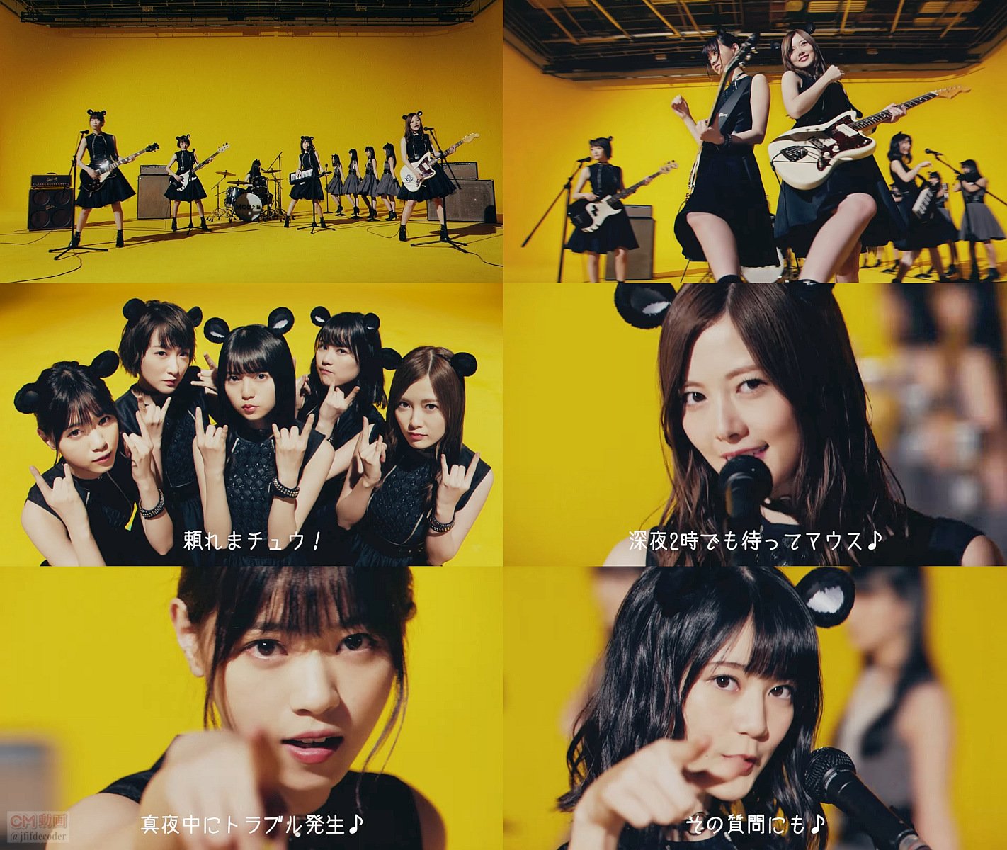 ネズミ風の耳の髪飾りをつけた乃木坂46の生田絵梨花,生駒里奈,齋藤飛鳥,白石麻衣,西野七瀬の6人によるバンドメンバーが演奏して「マウス マウス、パソコン買うなら〜♪」と歌い、最後に「頼れまチュウ」と言う、マウスコンピューターのCM動画ロングバージョン41秒版です。