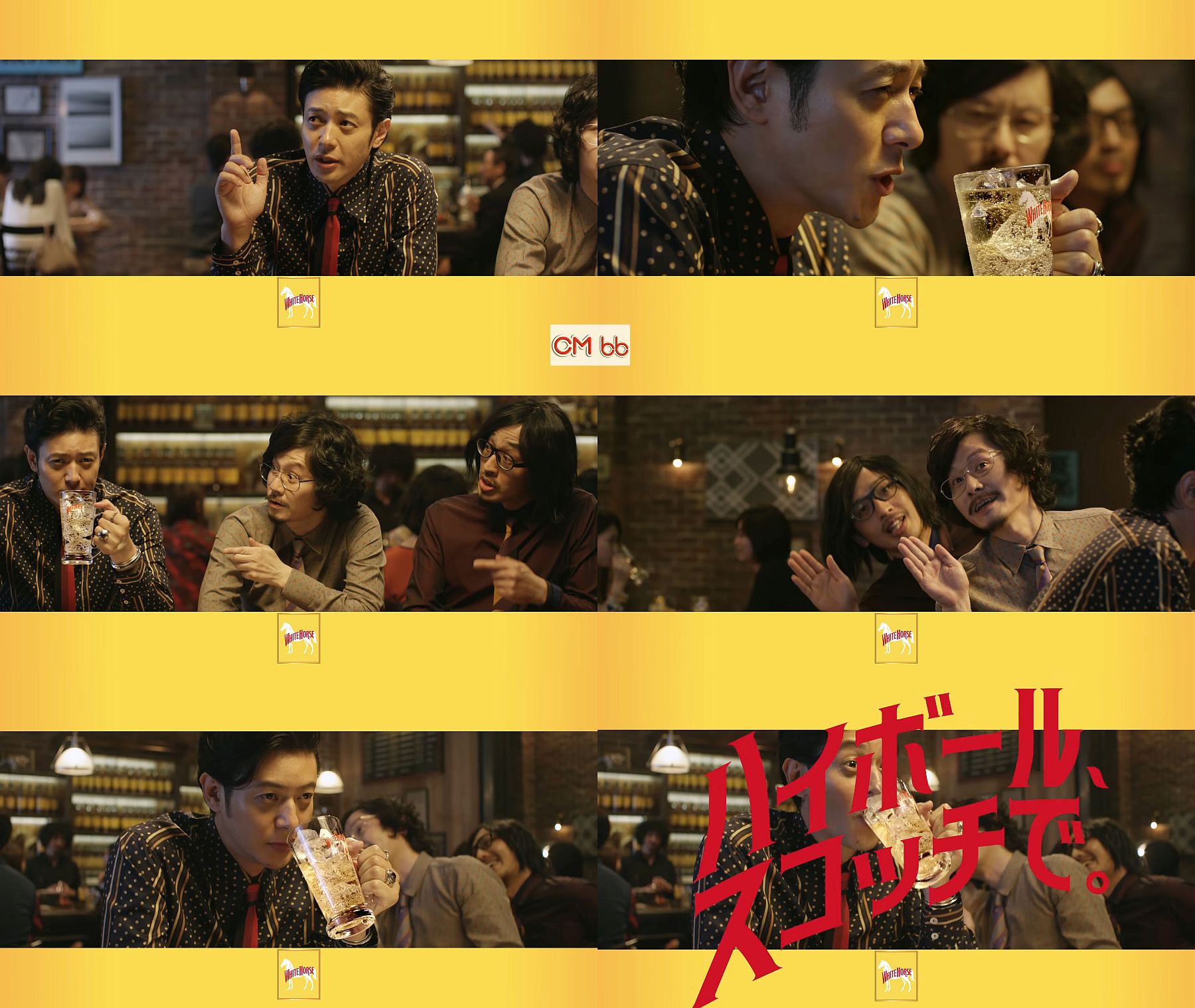 俳優のオダギリジョーさんが、「ハイボール、スコッチで。」とオーダーし、スコッチのホワイトホースのハイボールを一口飲み「ふわっとくる、スコッチの香り」と言うと、他の客も続々と「うまいです。これ」と言うCM「焼き鳥にも」改訂版。